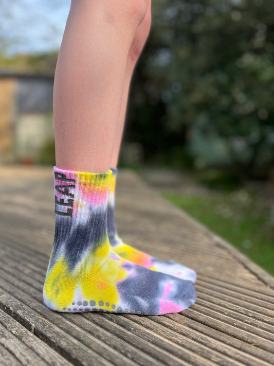Tie-Dye Sport Grip Socks for Kids - Pink/Yellow